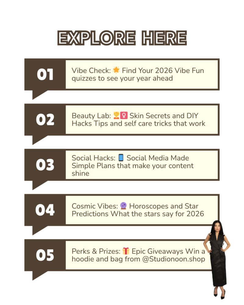 Ready to glow up in 2026? This year is all about discovering your best self inside and out. Find out if clean girl makeup is still in, uncover your perfect beauty routine, and learn the best skin health tips, DIY products, and hair care hacks that actually work. We will show you how to plan your social media posts so your content shines as much as you do. Take fun quizzes to discover your vibe, check your horoscope to see what the stars have in store, and see if 2026 will actually feel like 2016 again. Plus you could win a hoodie and bag from @Studionoon.shop. Grab your coffee and dive in….your ultimate 2026 glow up starts now.